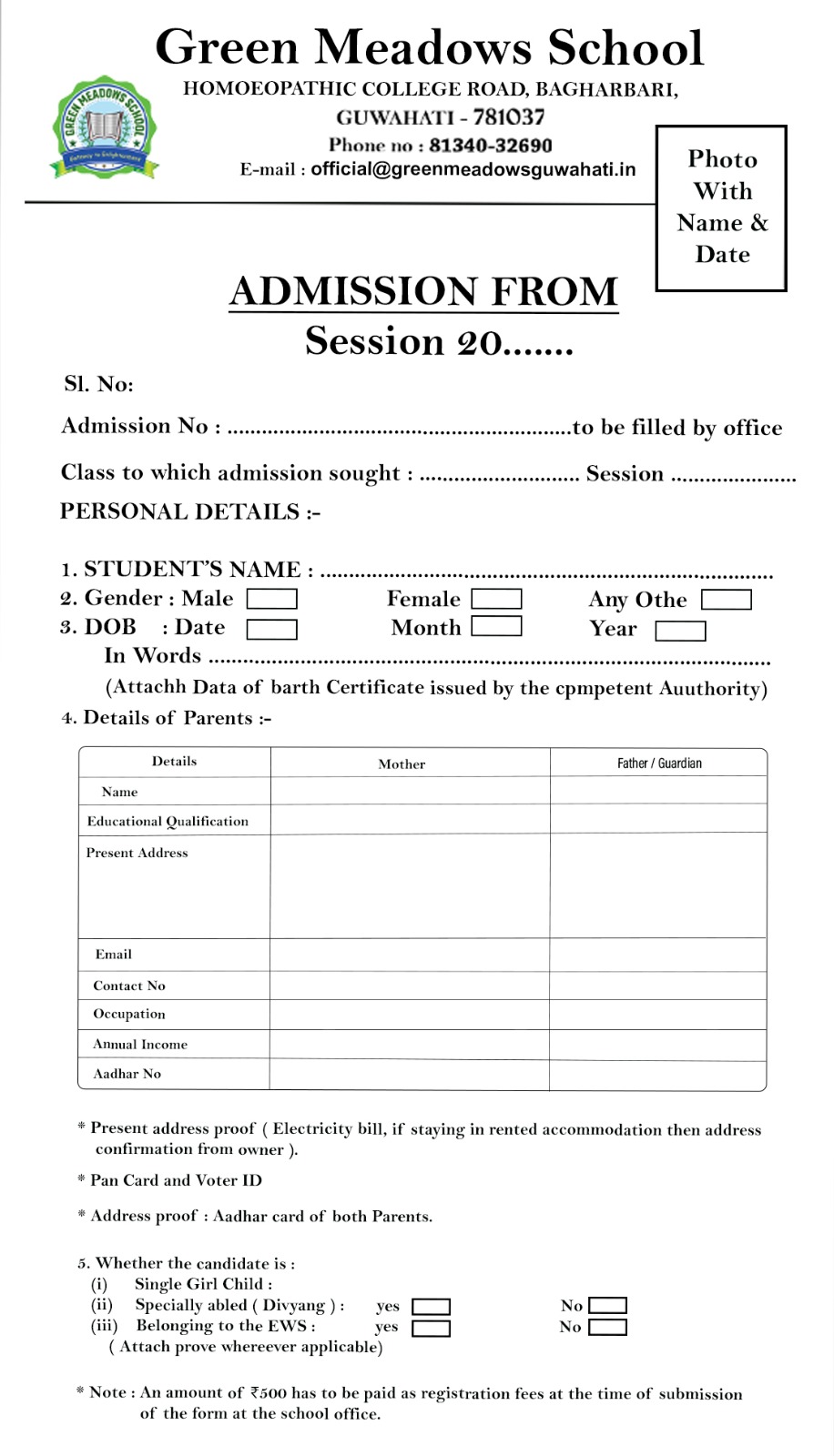 Begin your child’s journey at Green Meadows School Guwahati by filling out the admission form.